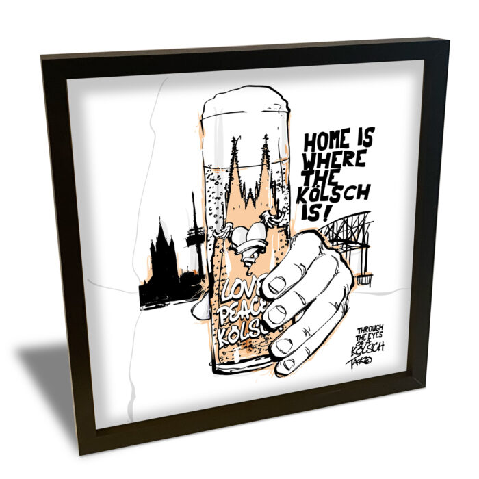 #KölnerArt – Love Peace Kölsch , schwarz gerahmt, 40 x 40 cm
